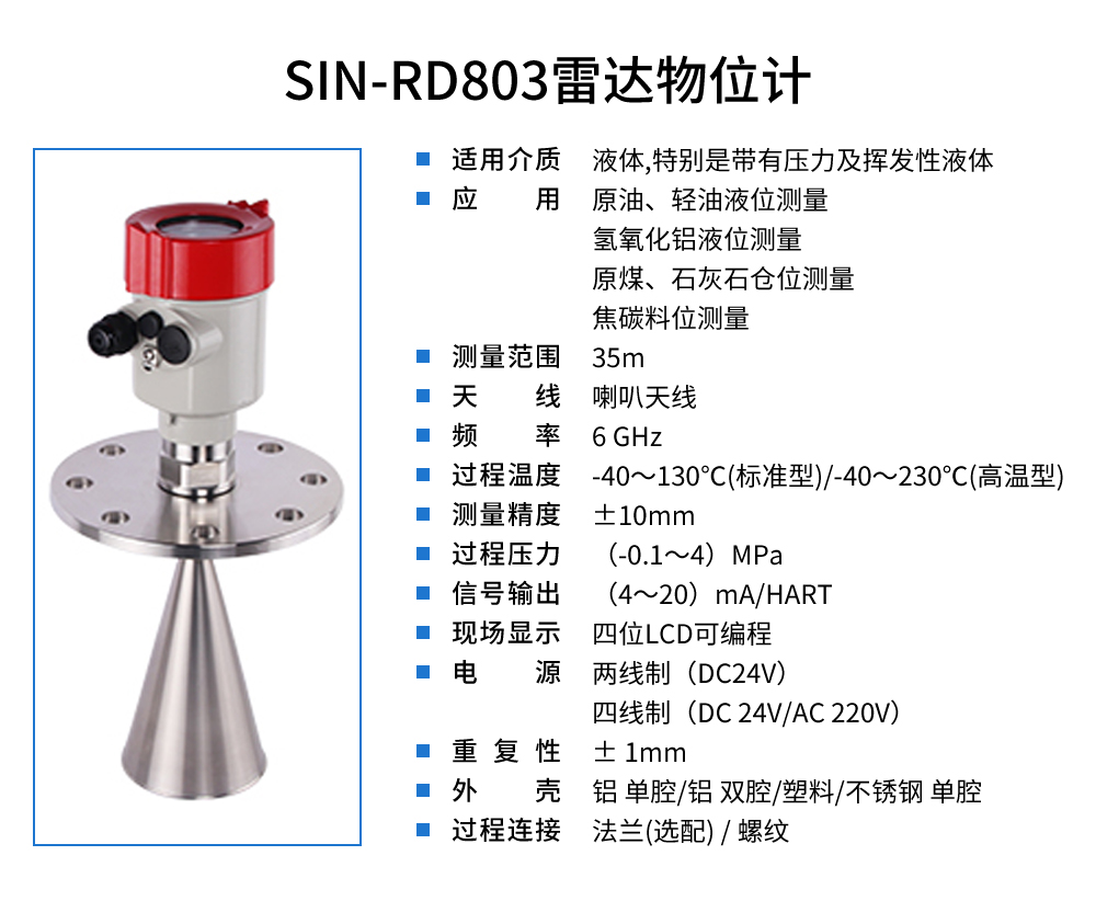 您的位置: 首頁 > 雷達液位計 >聯測_SIN-RD803雷達液位計_適用于揮發性液體_