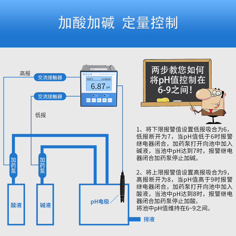 pH/ORP 控制器廣泛應用于火電、化工化肥、冶金、環保、制藥、生化、食品和自來水等行業,對溶液中 pH 值或 ORP 值和溫度連續監測。連續監測數據通過變送輸出連接記錄儀實現遠傳監控與記錄。